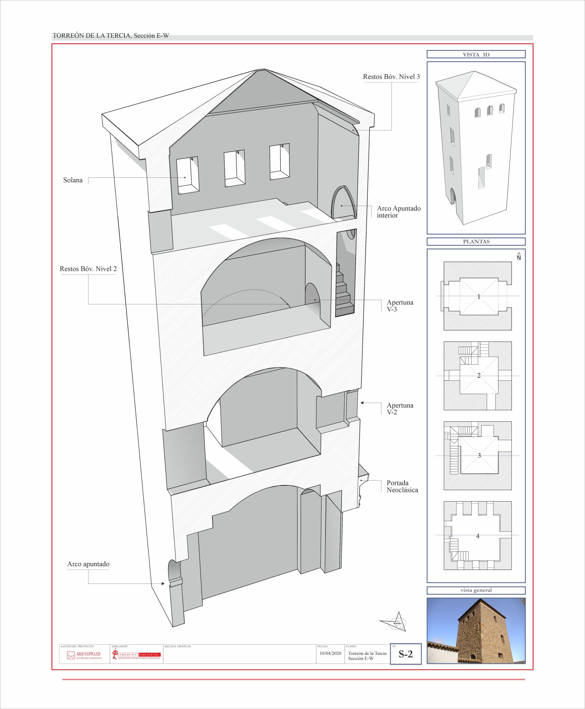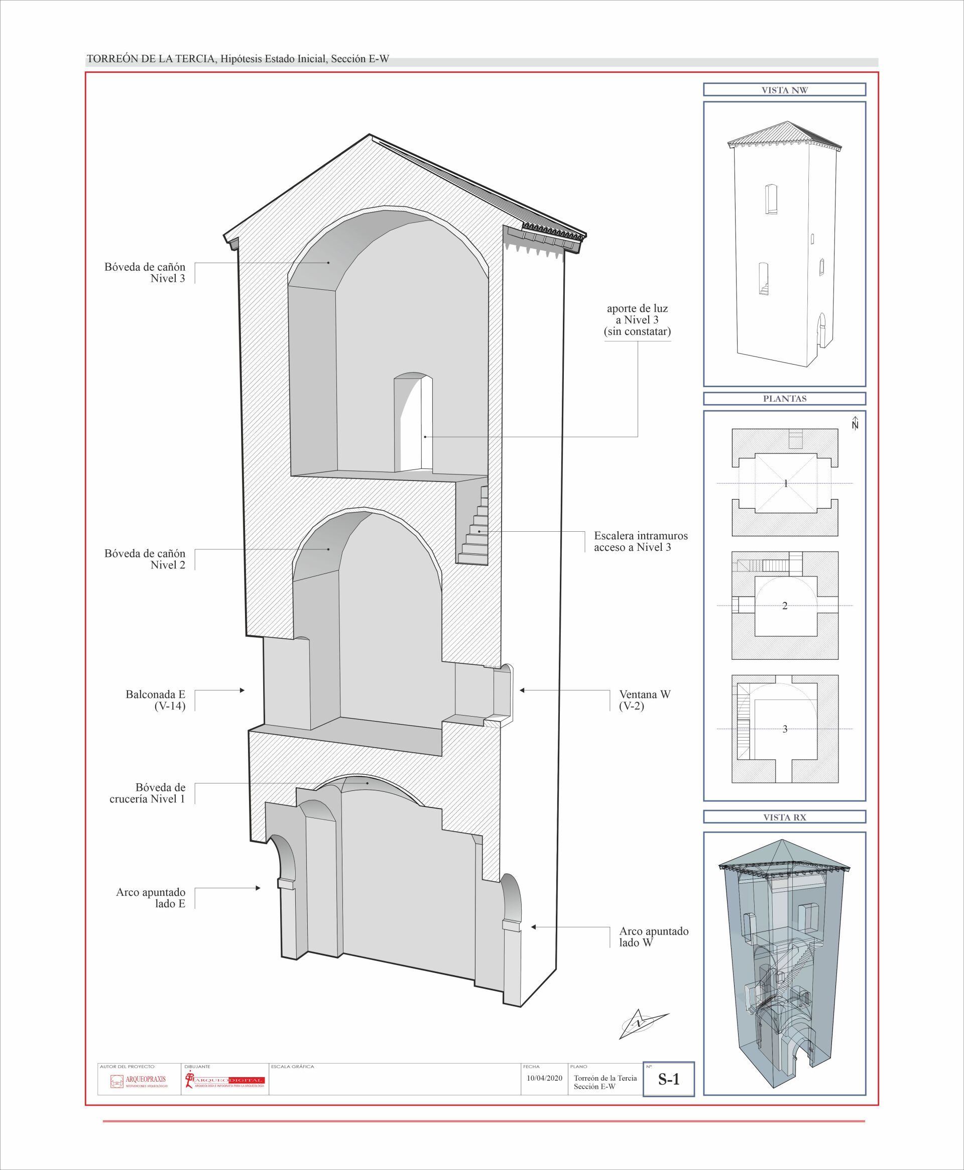 planimetría explicativa, Estado Actual (sección Vertical E-W) del Torreón de la Tercia, Consuegra