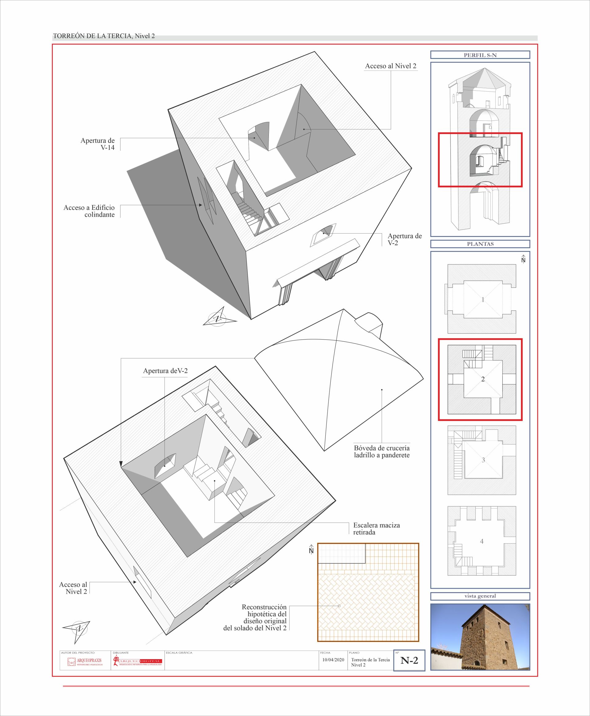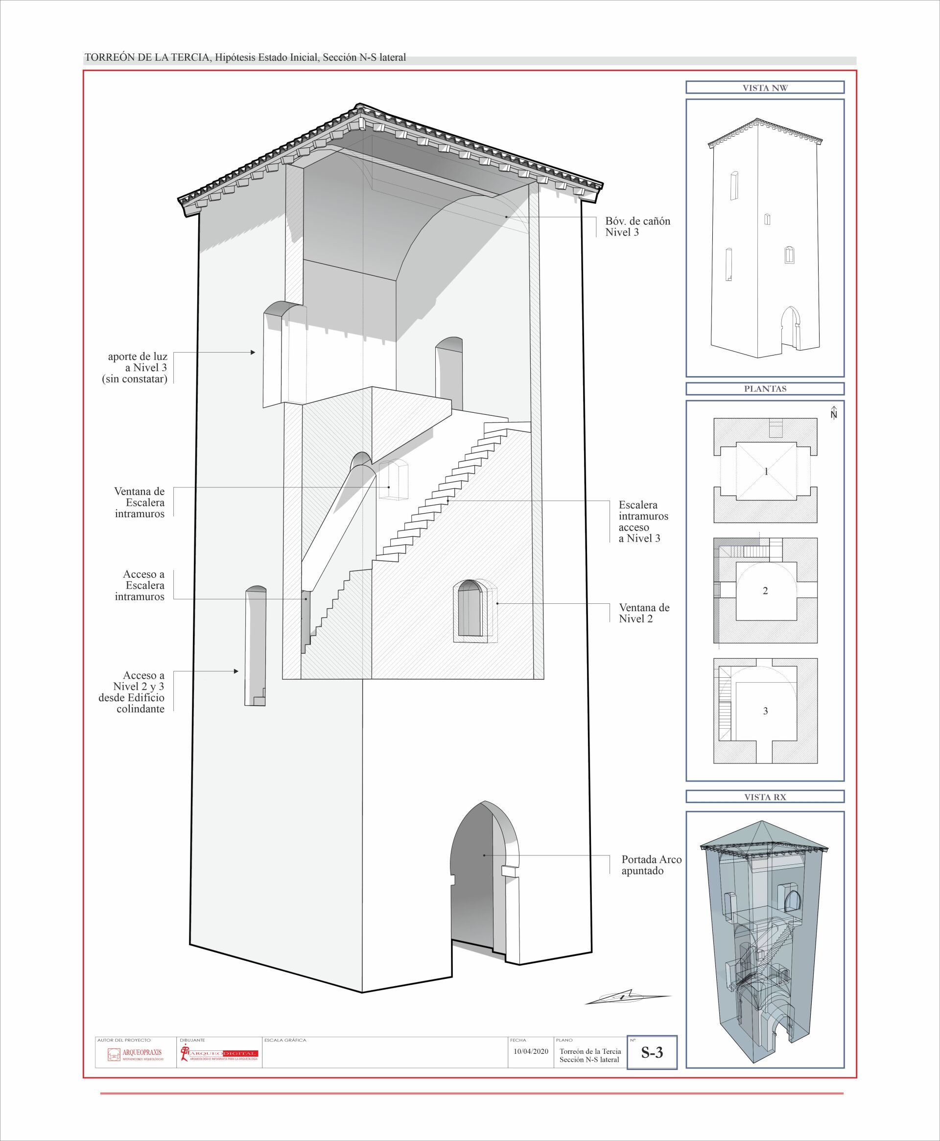 planimetría explicativa, Estado Actual (sección Vertical N-S) del Torreón de la Tercia, Consuegra
