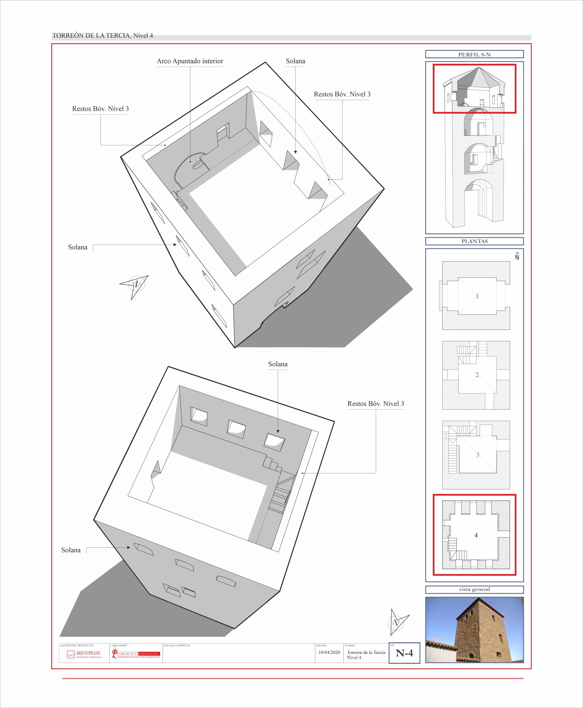 planimetría explicativa, Estado Actual (sección Horinzontal, Nivel IV) del Torreón de la Tercia, Consuegra