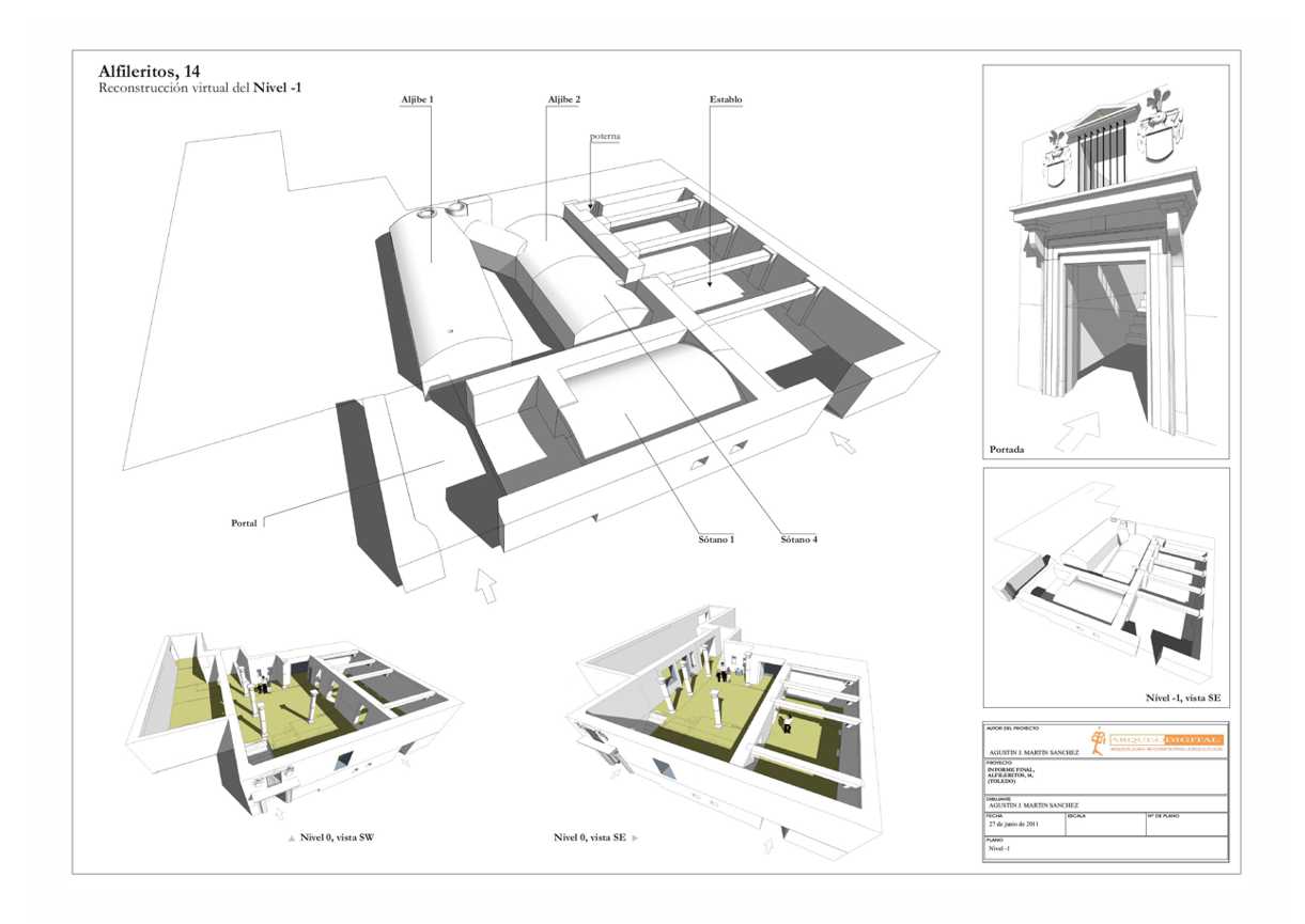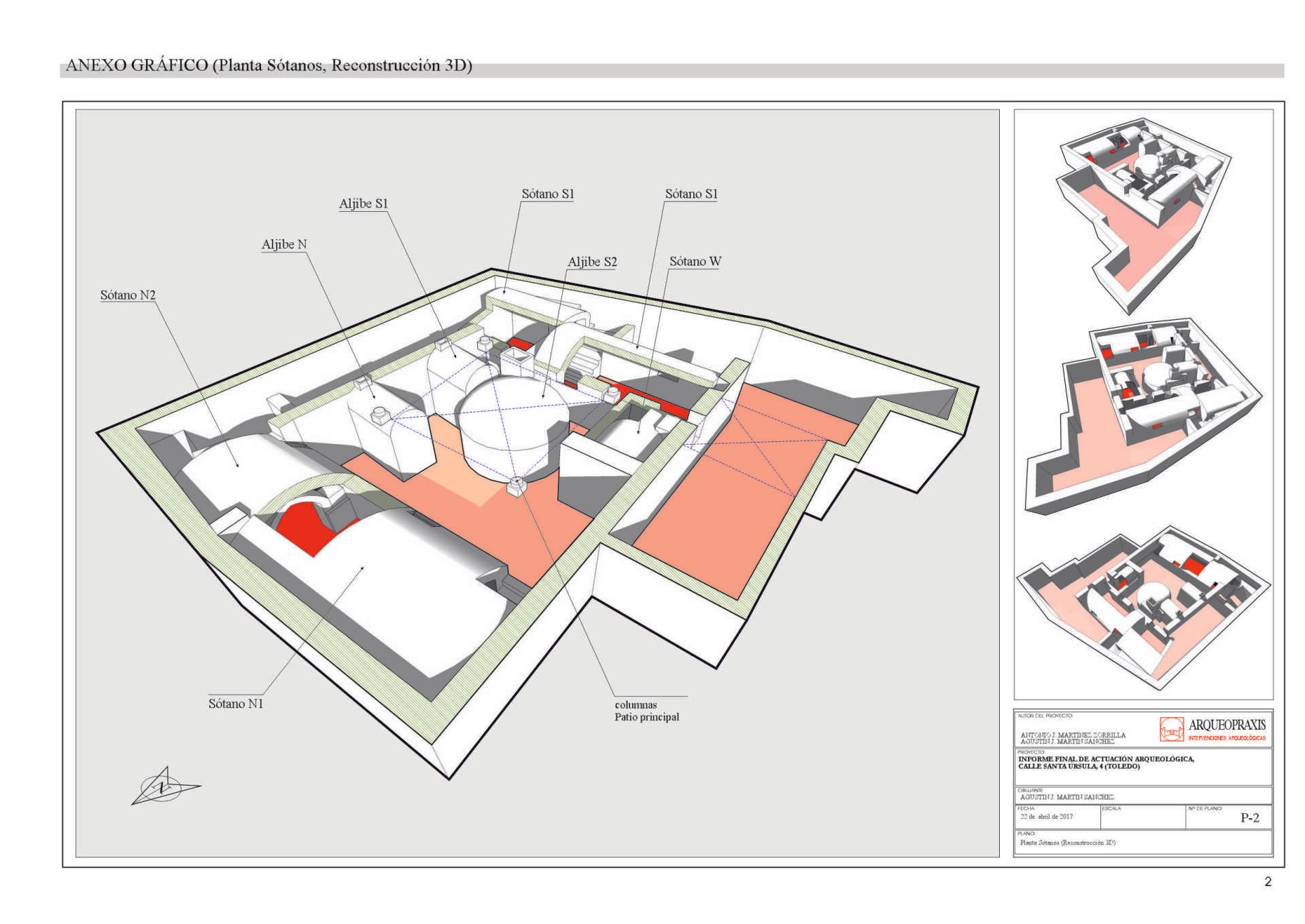 representacion 3D en plano explicativo de la Planta sótanos de la calle Alfileritos, 14 (Toledo)