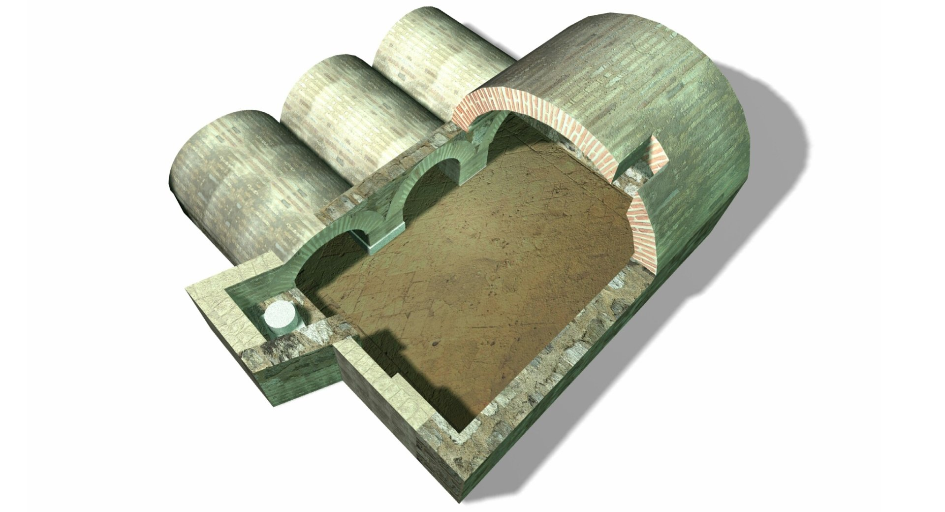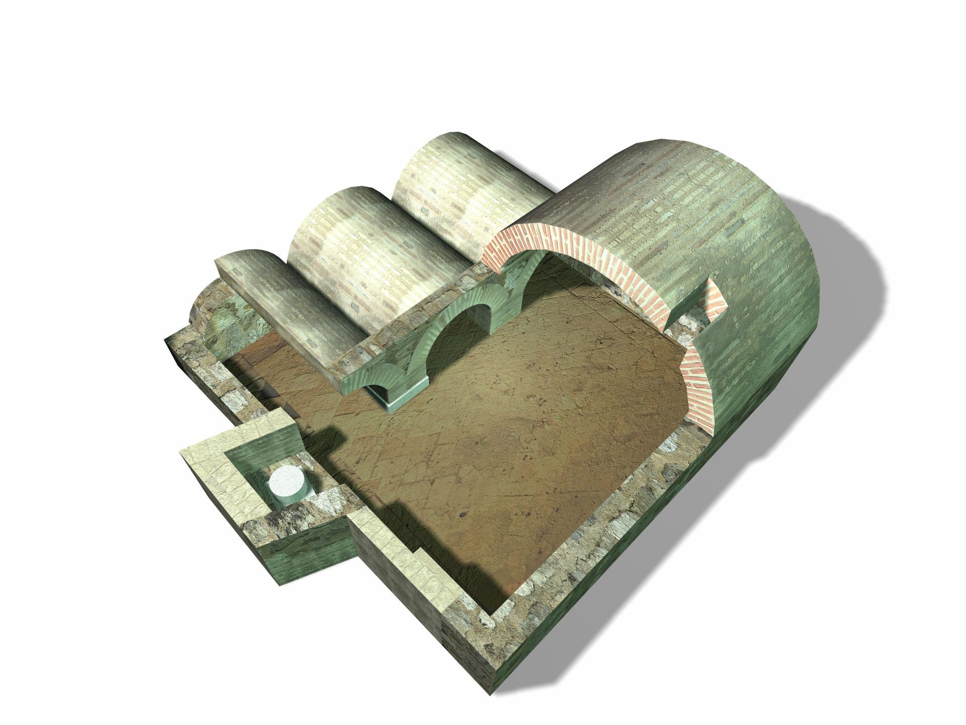 representacion 3D fotorrealista de una cripta en la Iglesia del convento de San Pedro Mártir (Toledo), volumen seccionado