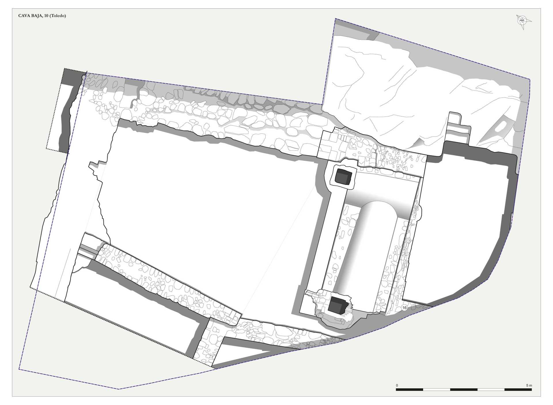 planoimetría con relieve sombreado de la excavación del solar de la calle Cava Baja, 10 (Toledo)