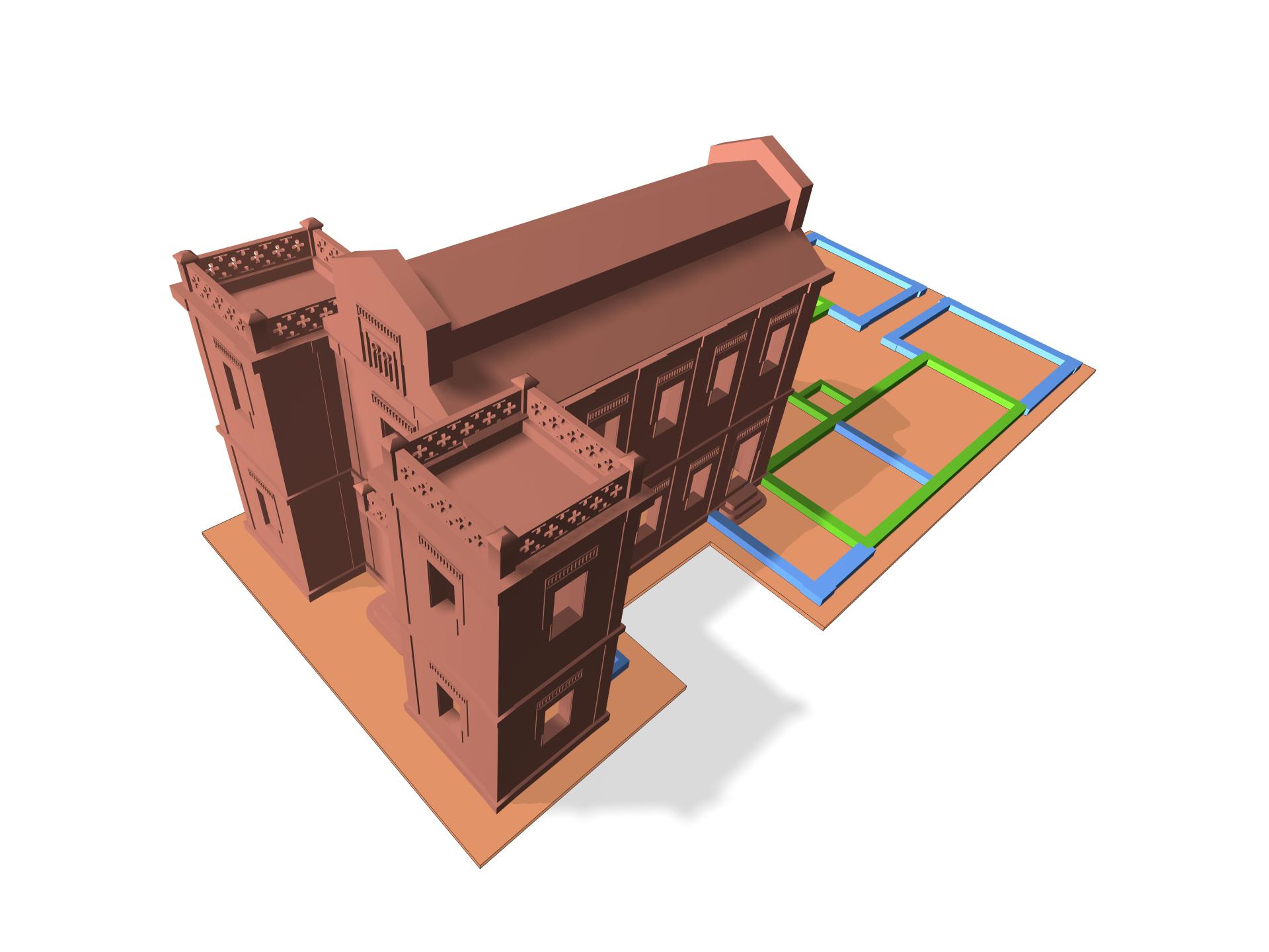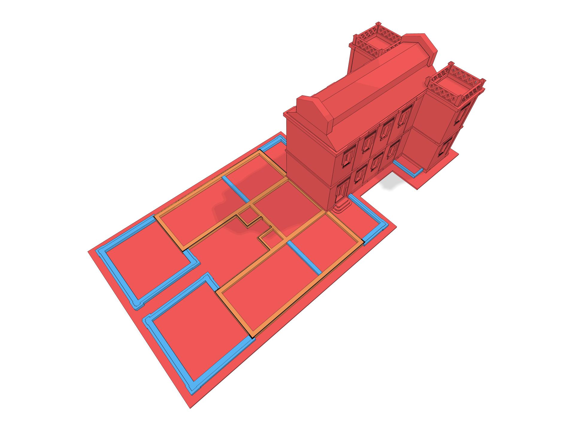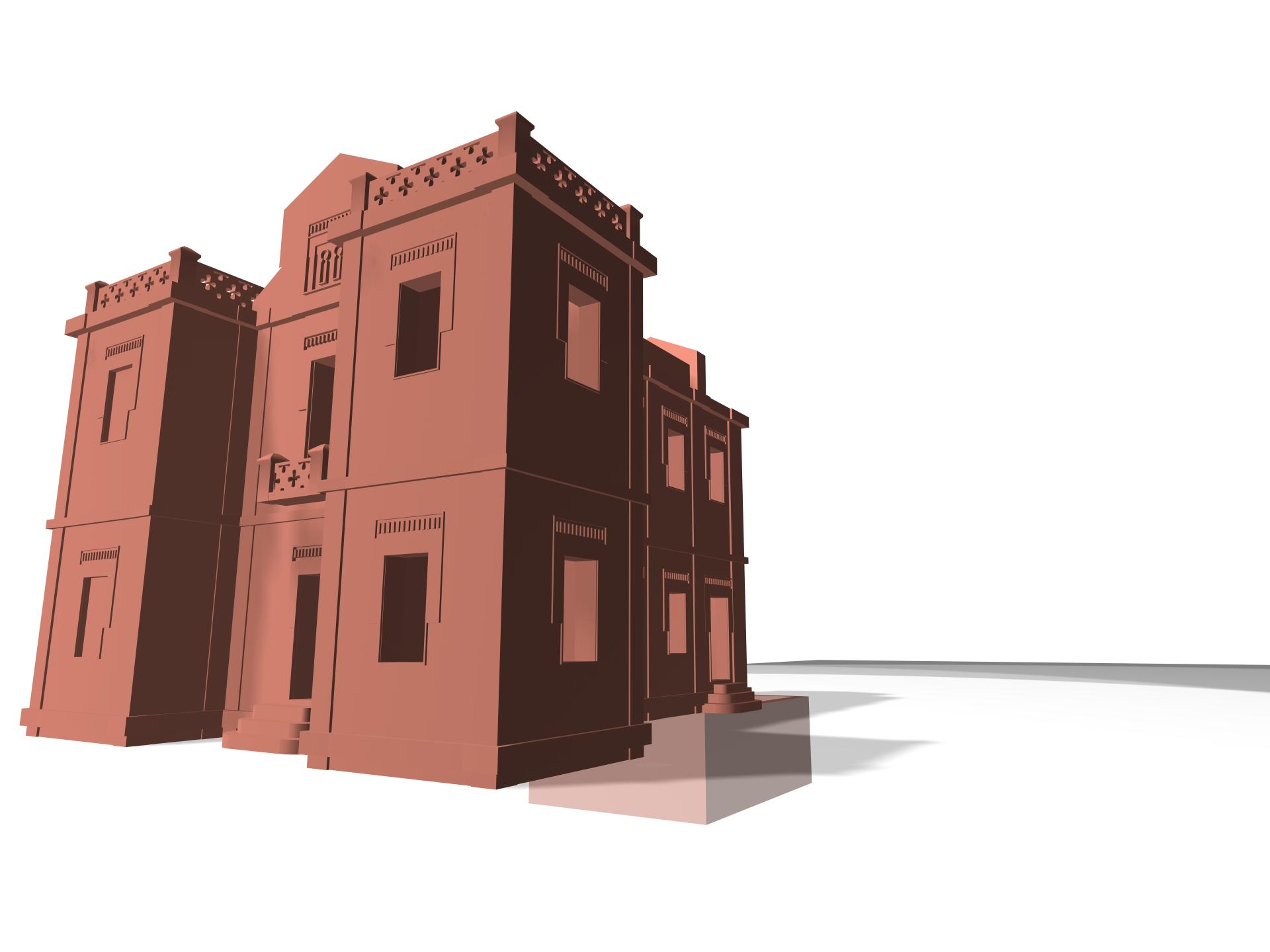 render de volúmenes del Laboratorio de la Fábrica de Armas (cuerpo original y fases cuerpos traseros)