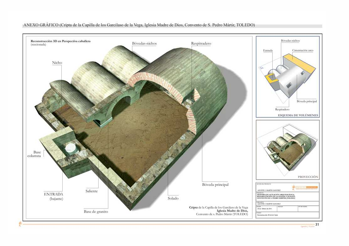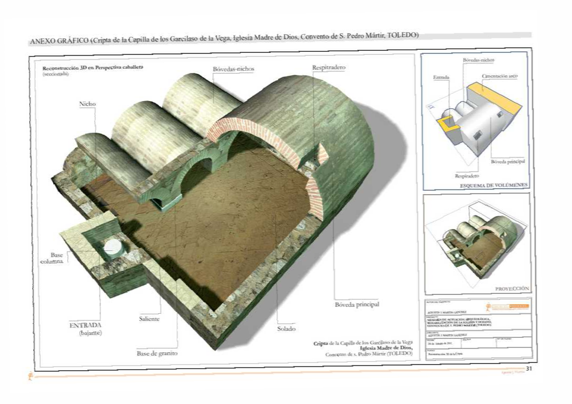 planimetría explicativa en 3D fotorrealista de una cripta en la Iglesia del convento de San Pedro Mártir (Toledo), sección