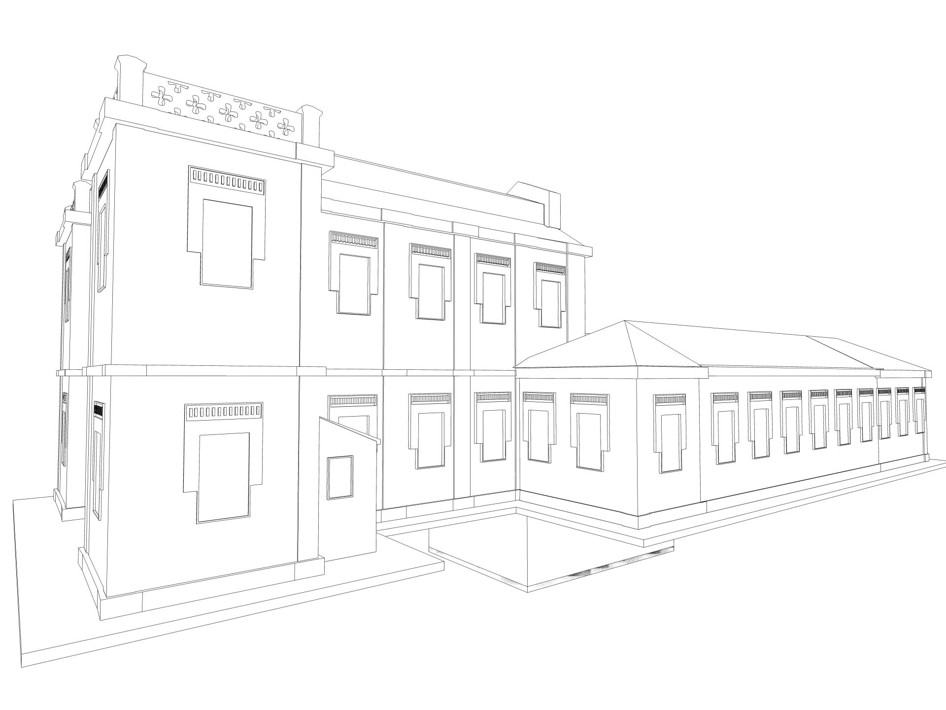 render de volúmenes lineal del Laboratorio de la Fábrica de Armas