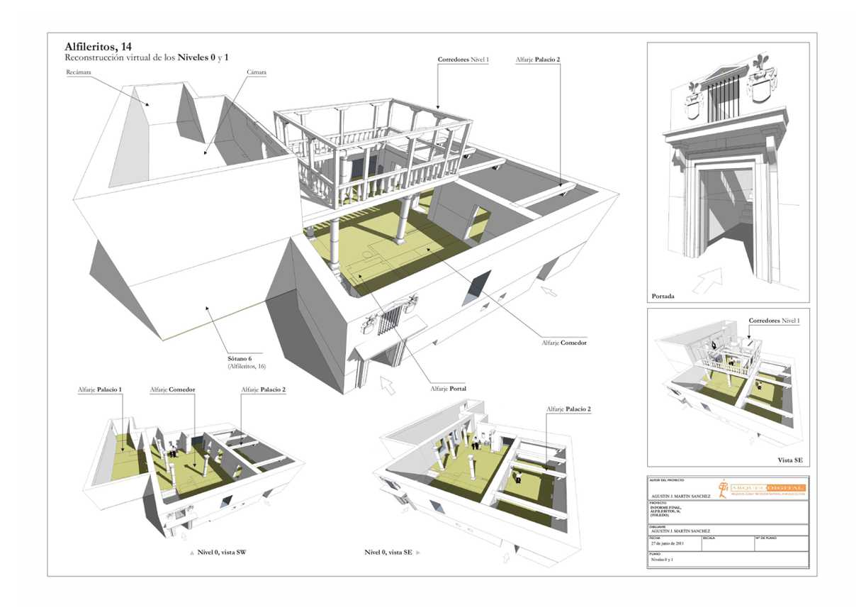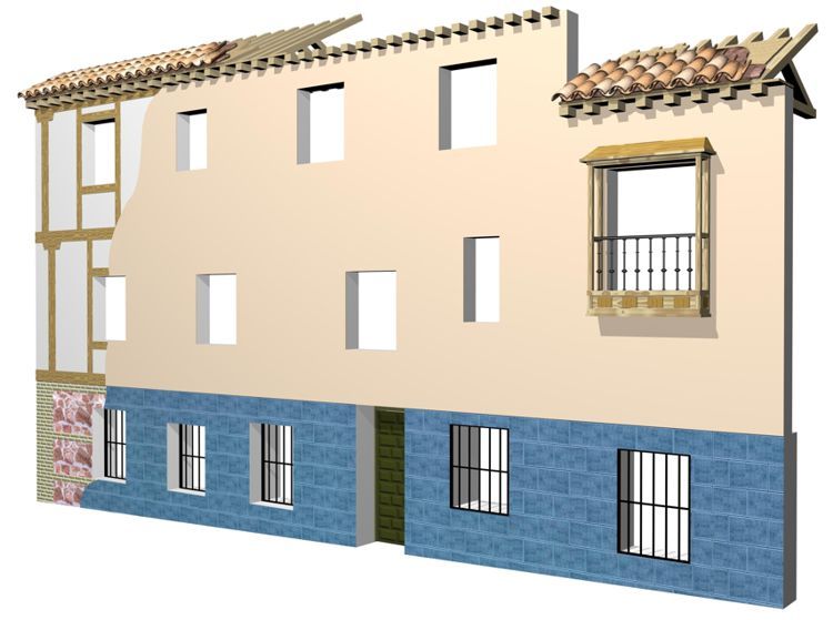 planimetría explicativa 3D de la fachada de la calle Alfileritos, 14 (Toledo)