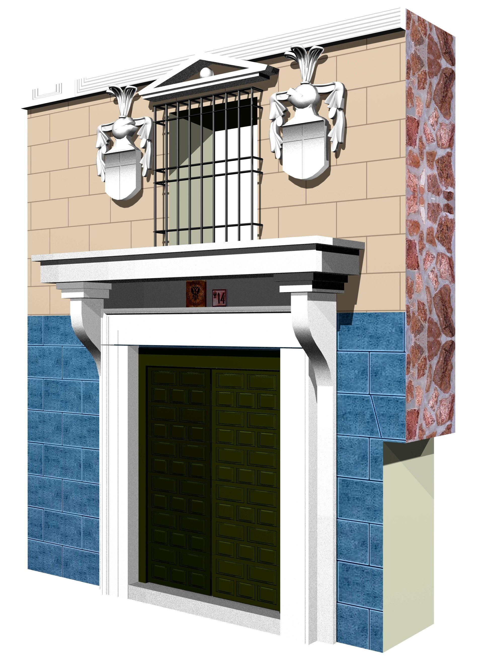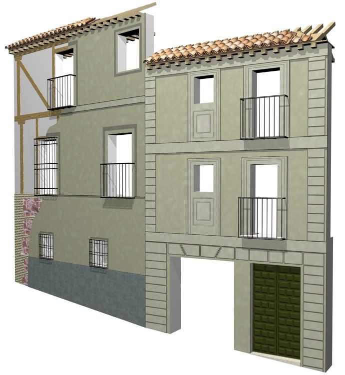 portada de la calle Alfileritos, 14 (Toledo), representación de volúmenes