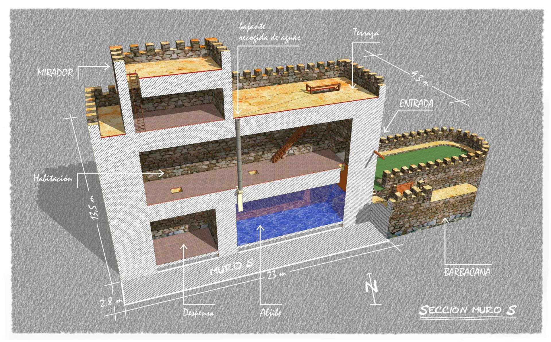 sección explicativa en 3D de la Torre de Abrahan (Retuerta del Bullaque)