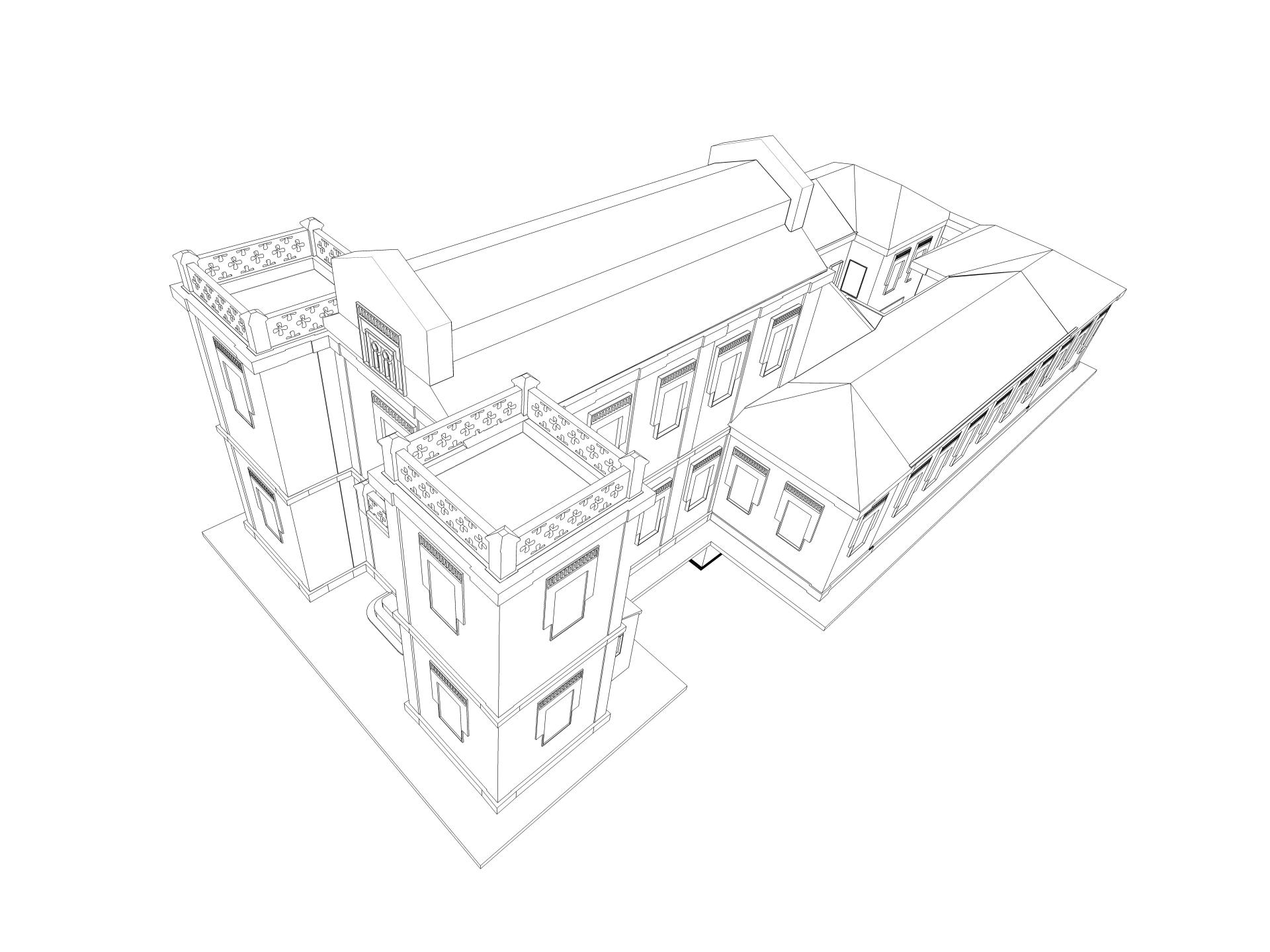 render de volúmenes lineal del Laboratorio de la Fábrica de Armas