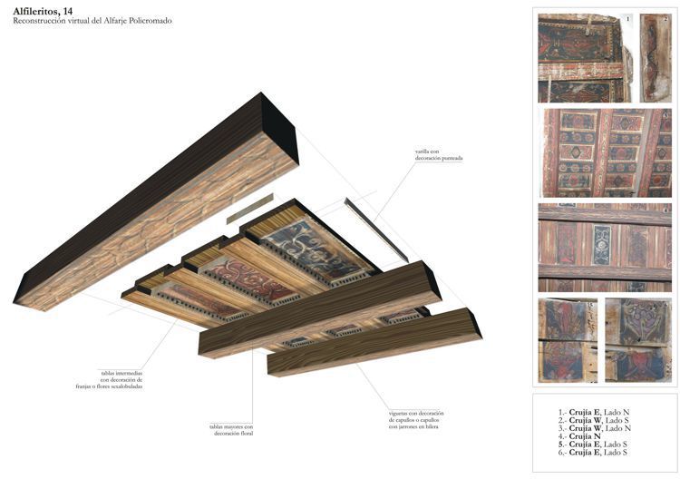 representación explicativa del despiece del alfarje, calle de Algfileritos, 14 (Toledo)